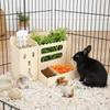 Bunny Hay Manger Food Dispenser Wooden Rabbit Hay Feeder with Litter Box Bowls Water Feeder for Bunnies Hamster Small Animals