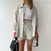Women 2 Piece Wrinkle Collar Long Sleeve Shirt Outfits Button Down Blouse And High Waist Drawstring Shorts Sweatsuit Set