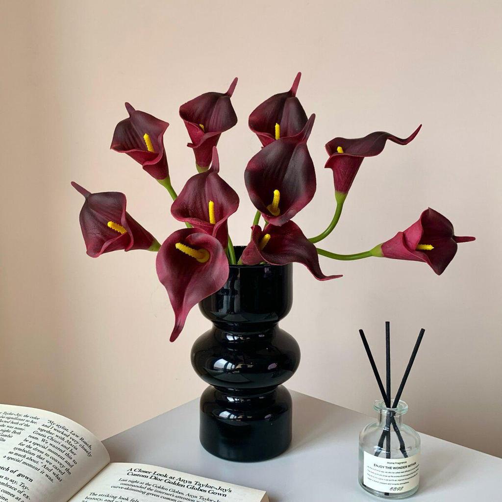 Elegant Calla Lily Faux Flower with Black Glass Vase for Living Room Decor