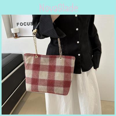 Stylish Plush Tote Bag With Large Capacity And Trendy Plaid Design For Everyday Use