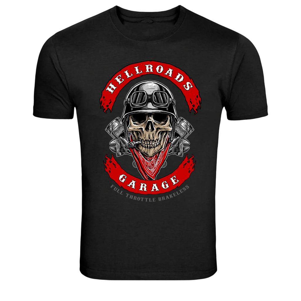 Hellroads Garage Skull Biker Mechanic Graphic T-Shirt