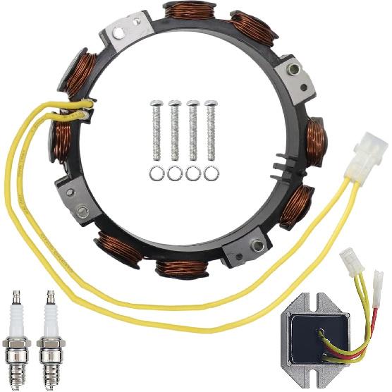 Package including: charge coil and 4 install screw and 2 spark plugs, one rectifier