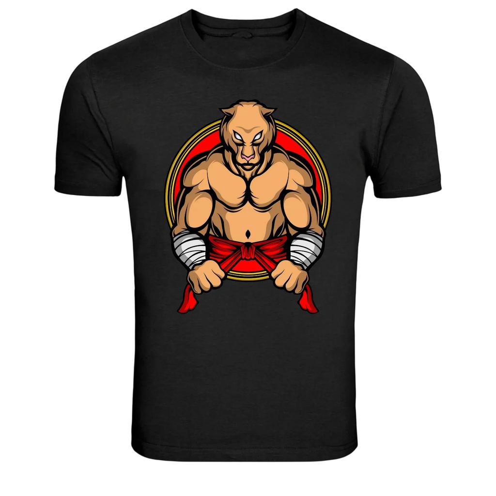Muscle Cat Fighter Martial Arts Mascot Graphic T-Shirt