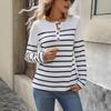 Women's Spring and Autumn New Fashion Versatile Striped Contrast Button Casual Long-sleeved T-shirt