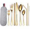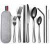 2026 Stainless Steel Portable Cutlery Set 9 Pcs Outdoor Camping Knives and Forks Spoons Chopsticks Straws