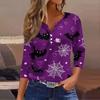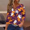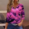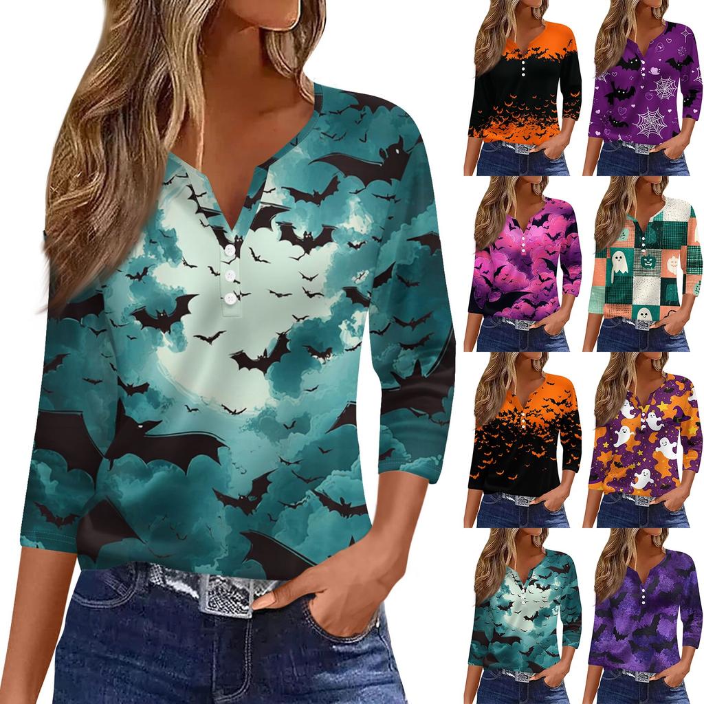 Women's Casual Fashion V-neck Loose Versatile Halloween Print Three-quarter Sleeve Top