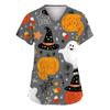 Dámská móda Krátký rukáv Halloweenský potisk Výstřih do V Kapsa Pracovní topy
