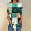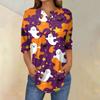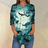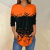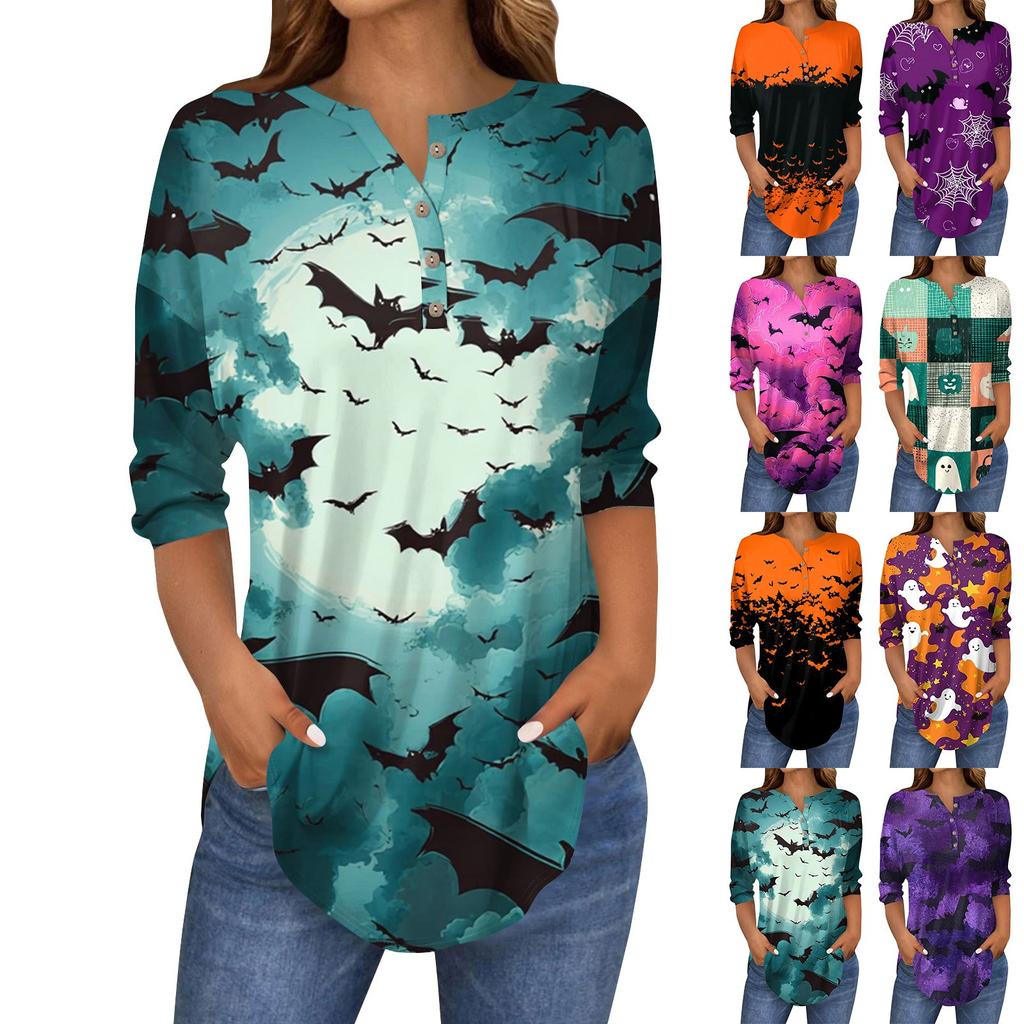 Women's Fashion Loose Button Collar Halloween Print Long Sleeve T-Shirt Top Pullover