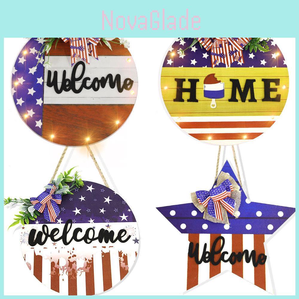 American Independence Day Wooden Welcome Sign Decorative Lighted Home Decor
