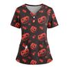 Dámské volné tričko s krátkým rukávem, módním halloweenským potiskem, výstřihem do V, zapínáním na knoflíky a bočním rozparkem