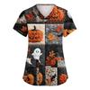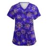 Dámské roztomilé potištěné pracovní oblečení Výstřih do V Dvouvrstvé kapsy Základní top s krátkým rukávem Pulovr