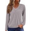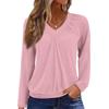 Women's Casual Fashion V-Neck Raglan Pleated Color Long Sleeve Top