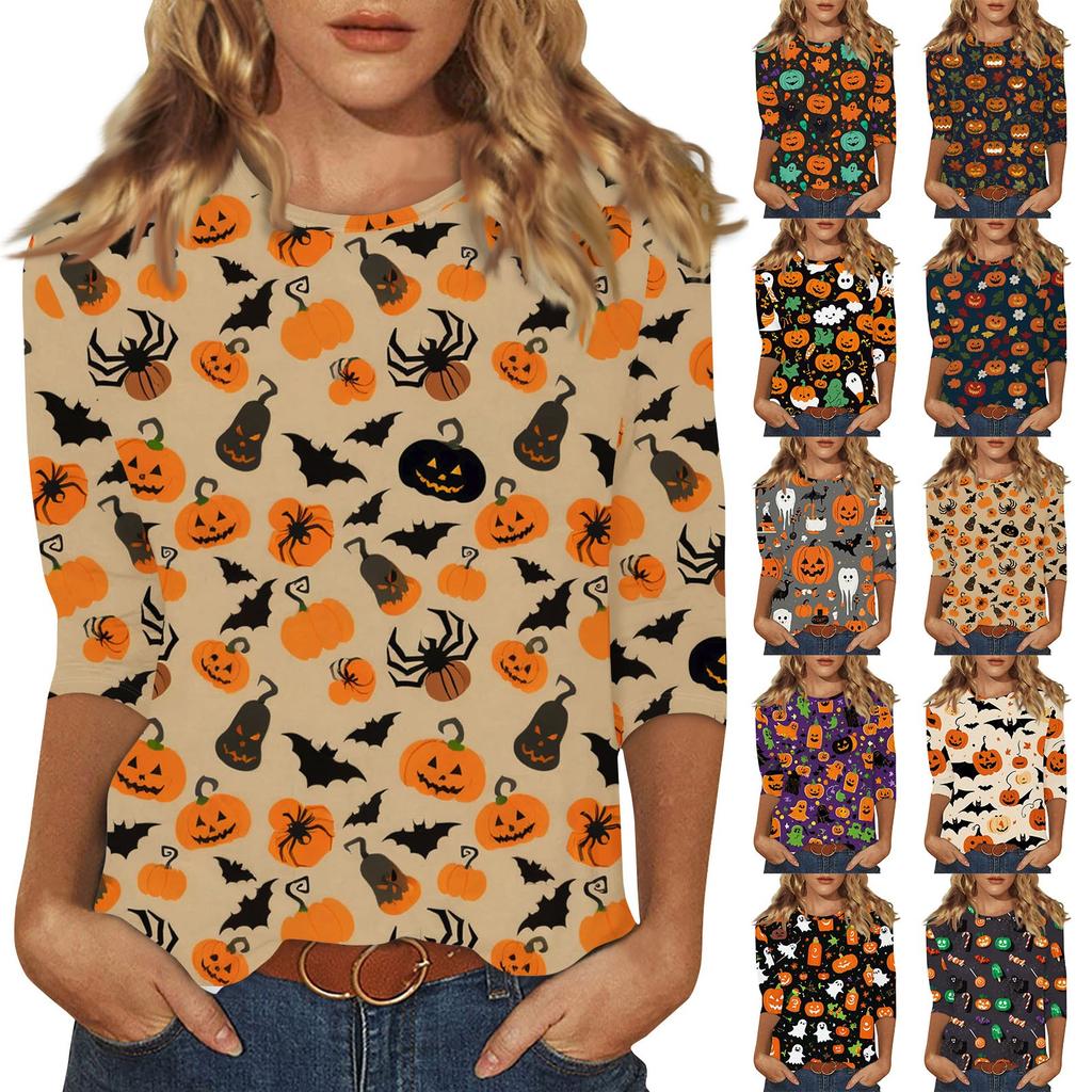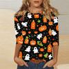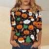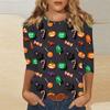Women's Fashion Casual Three-quarter Sleeve Halloween Printed Round Neck Top