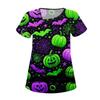 Dámské potištěné pracovní oblečení, šikmý límec a dvojité kapsy, základní top pulovr