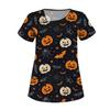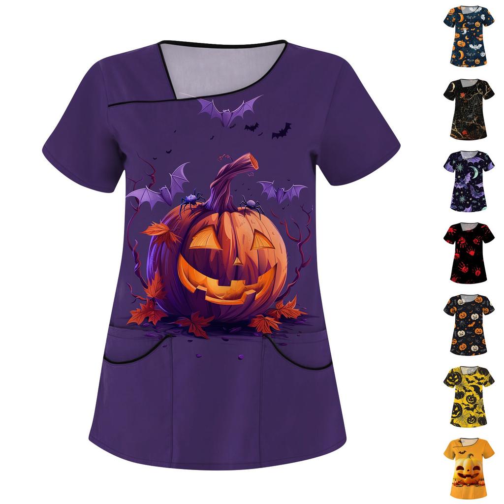 Dámské potištěné pracovní oblečení, šikmý límec a dvojité kapsy, základní top pulovr