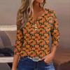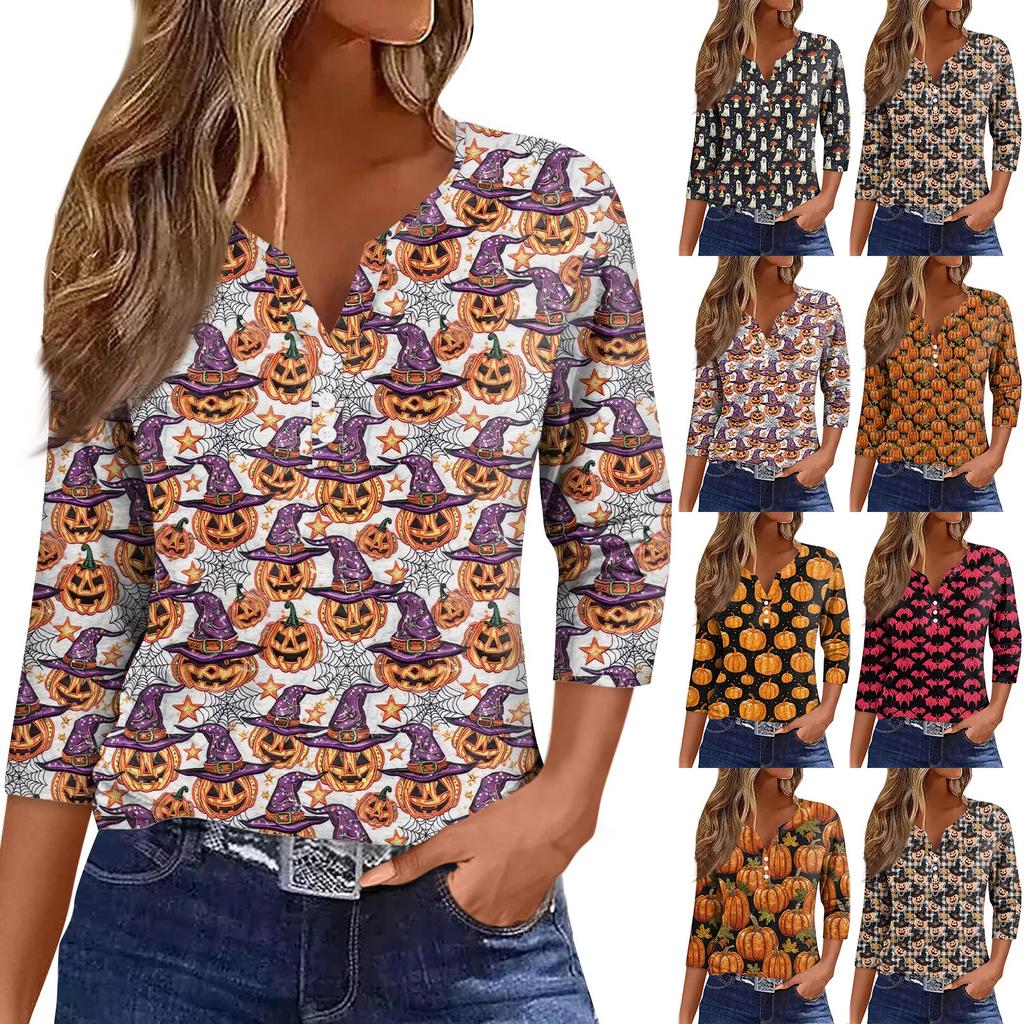 Women's Fashion Casual Halloween Printed V.Neck Short Sleeve Decorative Button Three.quarter Sleeve T-shirt Tor
