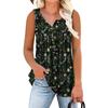 Ladies Summer New Fashion Casual Round Neck Button Sleeveless Small Floral Casual Tops