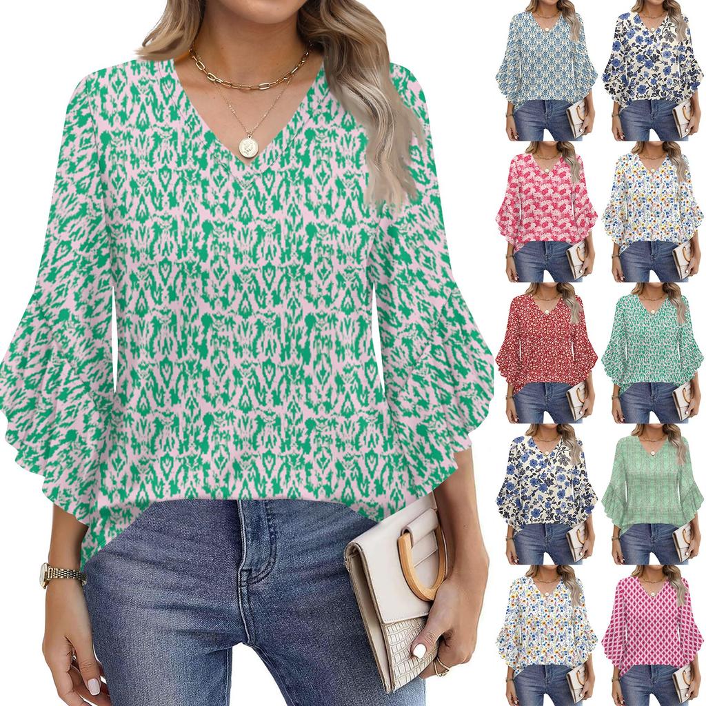 Blouses For Women Dressy Casual 3/4 Length Sleeve Womens Tops V Neck Tshirts Shirts With Flared Sleeve