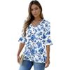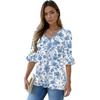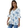 Women's Casual 3/4 Sleeve Tops V-Neck Sleeve T-Shirt Floral Print Tops