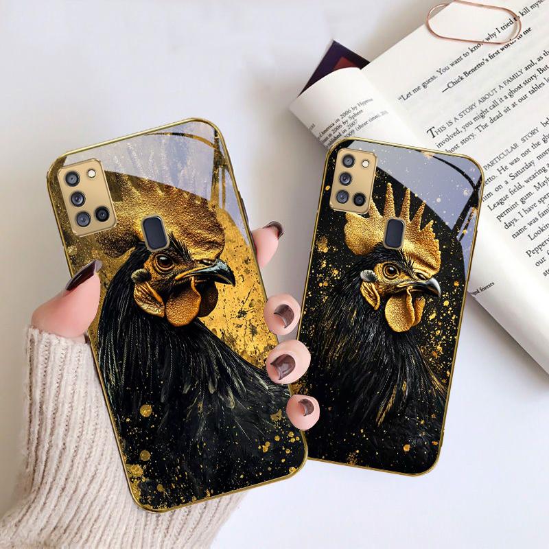 Brave Golden Rooster For Samsung A 31 32 A33 A34 35 14 A15 13 A16 25 26 50 52 53 54 55 56 70 71 72 73 Golden glass phone case
