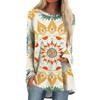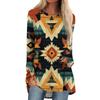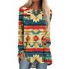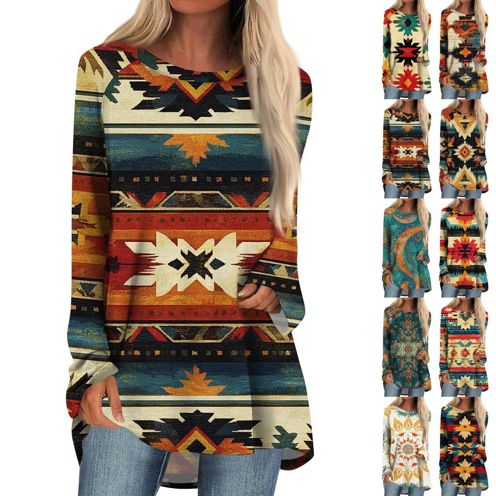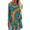 Women's Fashion Casual Long Sleeve Print Round Neck Pullover Top Blouse