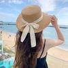 Bow Burr Edge Flat Top Straw Hat Women's Summer Seaside Beach Vacation Japanese Hawaiian Sun Woven Visor