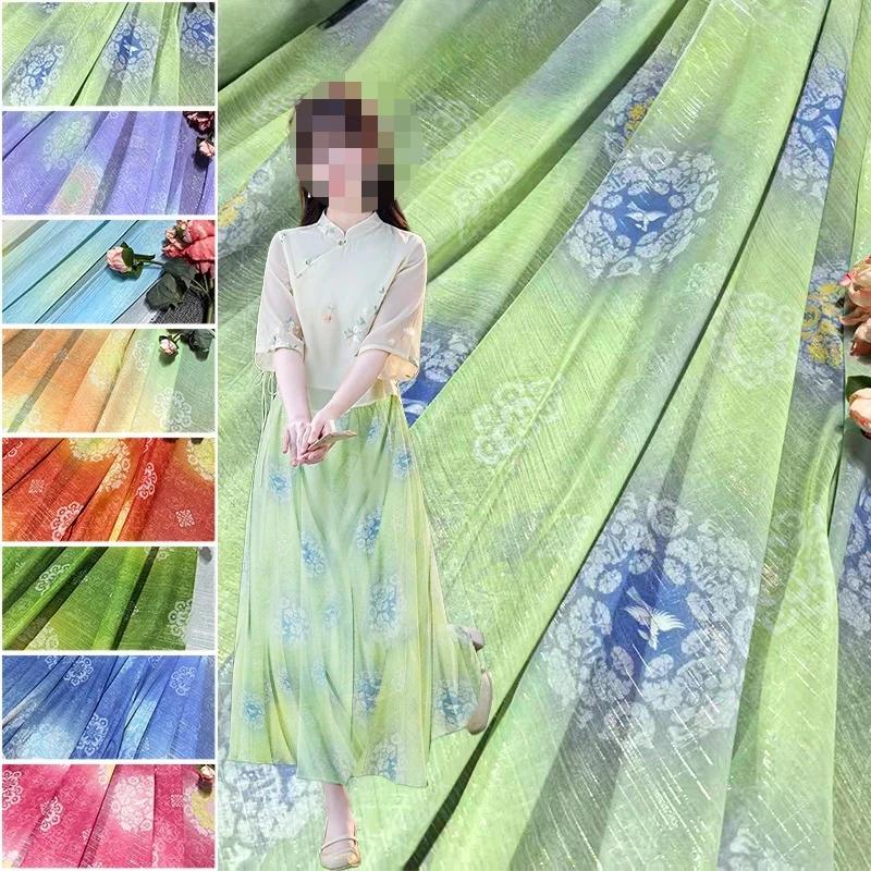 Ancient Flower Print Tulle Chiffon Fabric For DIY Hanfu Stage Dance Dress Costume Sewing Designer Fabric Decor Crafts 100x150cm