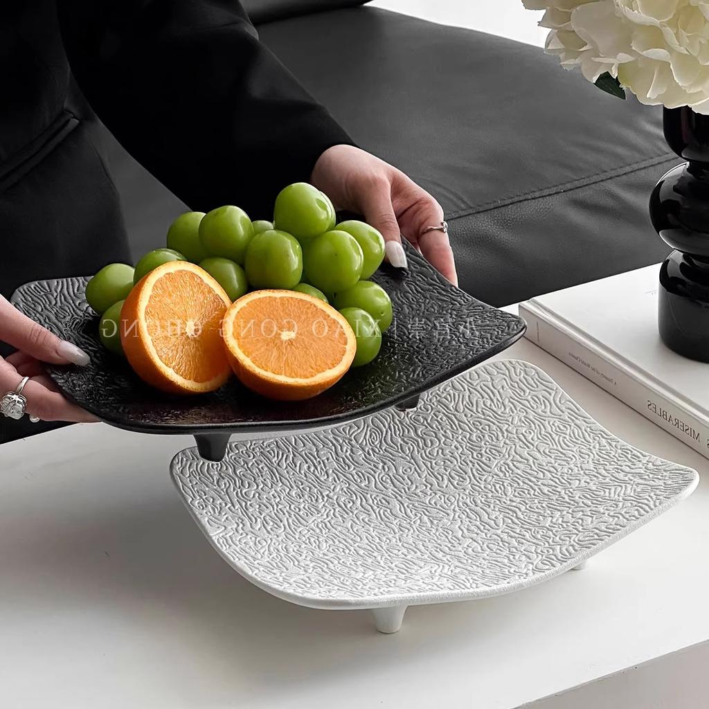 Ceramic High-legged Tray Water Ripples Candy Bowl Fruit Platter Desktop Storage Container Fruit Platter Dessert Plate