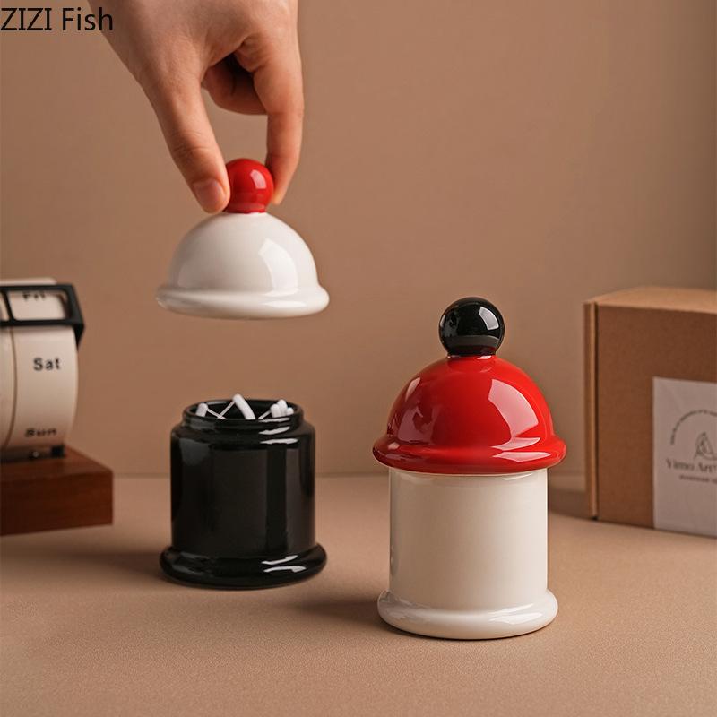 Cute Toothpick Box Creative Ceramic Storage Box Decoration Modern Decor Household Floss Cotton Sticks Toothpick Organizer Gift