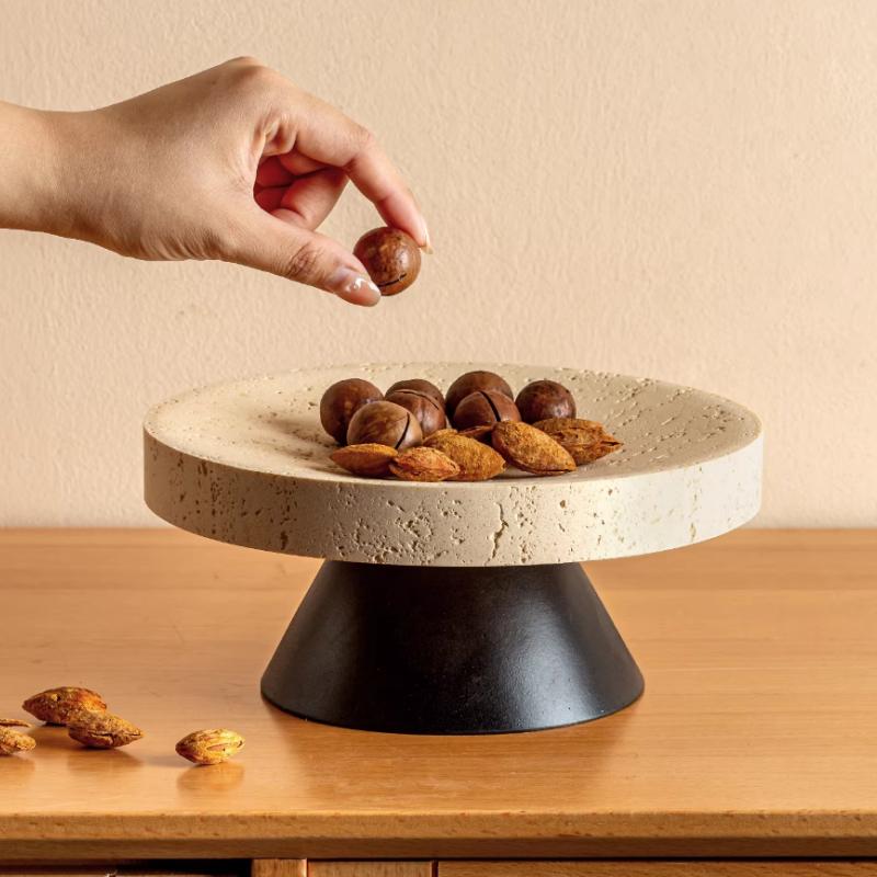 Yellow Stone Fruit Plate High-legged Tray Fruit Plate Desktop Storage Container Dessert Plate Cake Tray Resin Handicrafts