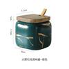 Matte Marble Pattern Ceramic Kitchen Spice Jar Oiler Set Wooden Cover Salt Shaker Spice Jar Kitchen Condiment Storage Rack Set