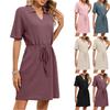 Women's Fashion V-neck Short Sleeve Bow Belt Dress