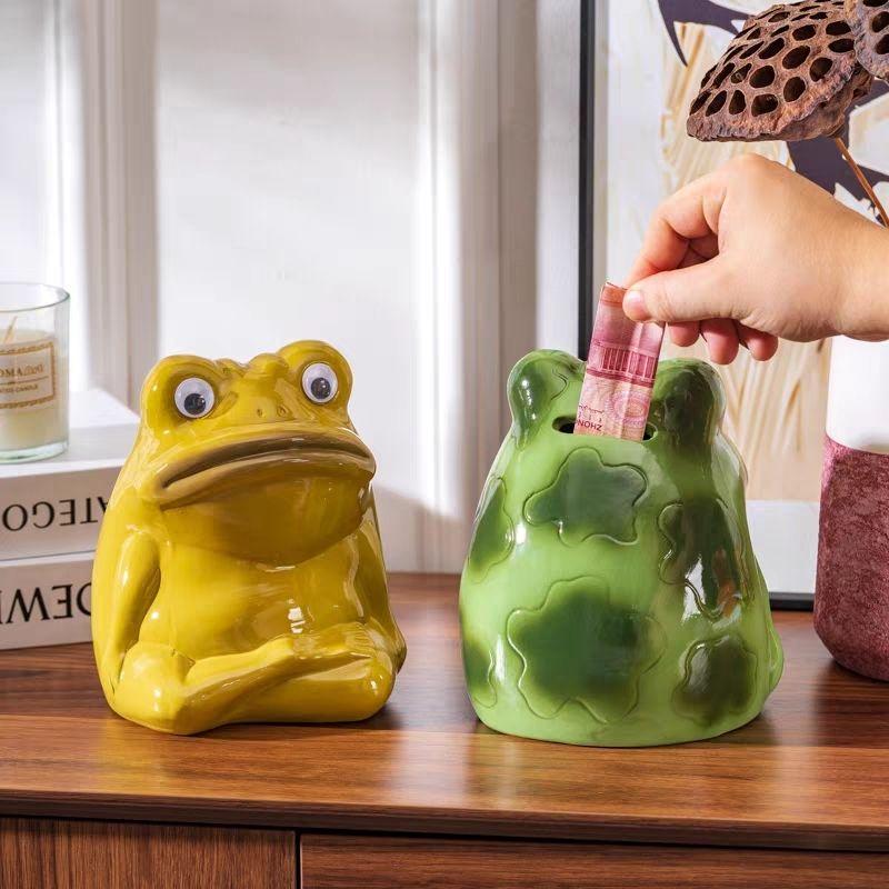 Ceramic Metaphysical Frog Ornament Cartoon Kid's Piggy Bank Creative Wine Cabinet Living Room Desktop TV Cabinet Decorative Gift