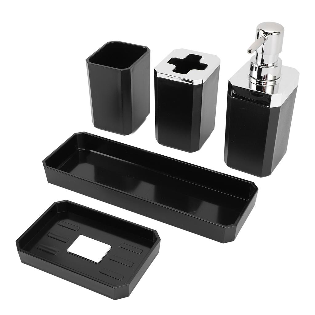 Bathroom Accessories Set Bath Ensemble Set with Toothbrush Holder Cup Lotion Bottles Soap Dish Tray