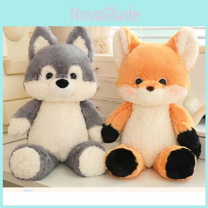 Adorable Fox And Wolf Plush Toys Soft And Cuddly Cartoon Animal Pillows For Kids