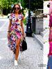 Printed dress summer V-neck split fork medium and long group women's clothing