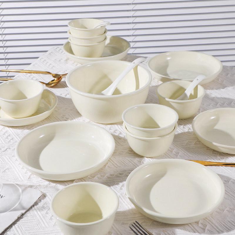 Trendy Solid Color Ceramic Tableware Set: Plates, Bowls, Chopsticks