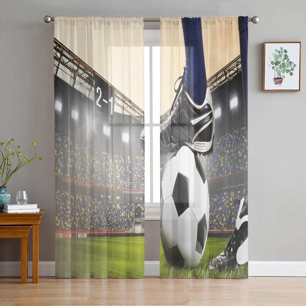 Gymnasium Soccer Court Balls Football Sheer Drapes for Living Room Bedroom Decoration Window s Morning Curtain
