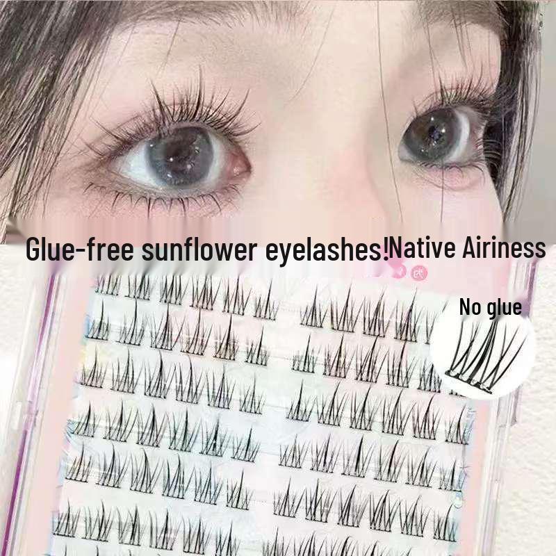 Non-Adhesive Natural Sunflower False Eyelashes, 120 Ultra-Soft Segmented Clusters