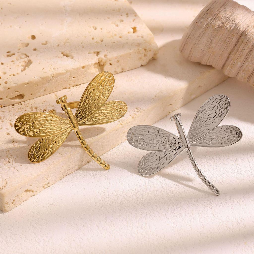 Americký Retro Nerezový Prsten s Vážkou - Geometrický, Univerzální, Vysoce Módní pro Ženy