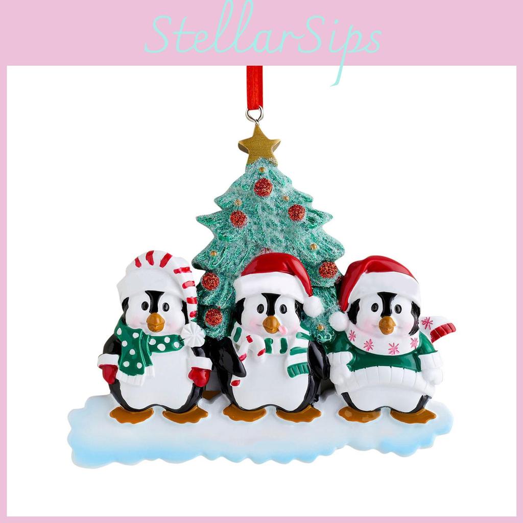 Charming Resin Penguin Family Christmas Ornaments Adorable Holiday Decorations Set