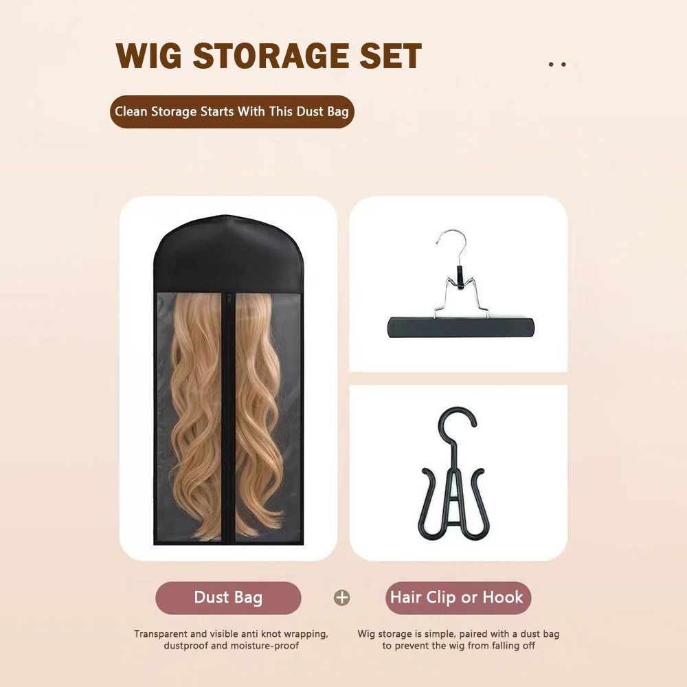 With Hanger Wig Storage Bag Water Dust-Proof Custom Logo Wig Bag Wooden Hangers Extra Long Wig Storage Organizer Daily Use