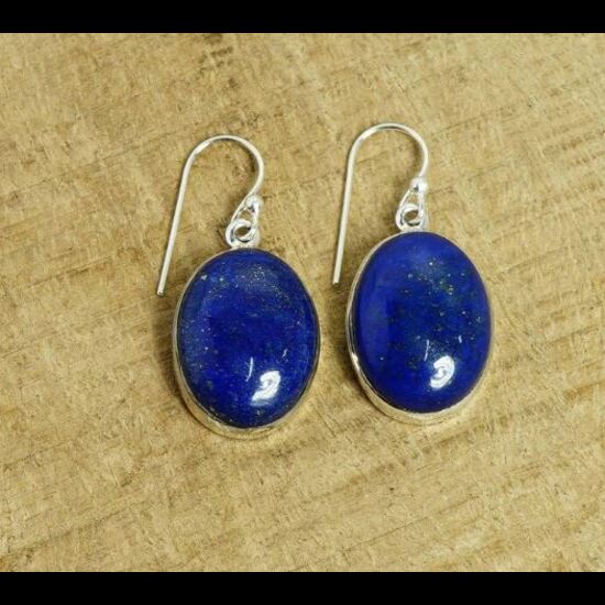 Solid 925 Sterling Silver Lapis Lazuli Oval Gemstone Drop Earrings Women Handmade Earrings