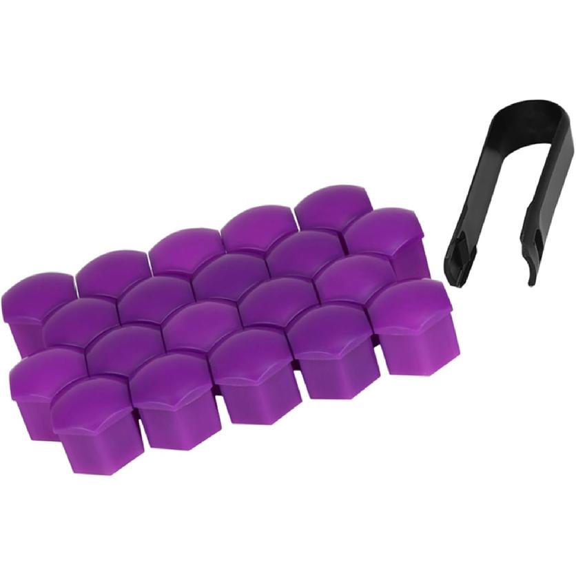 20pcs 21mm Universal Purple Plastic Car Wheel Nut Lug Hub Screw Rim Bolt Covers Dust Protection Caps with Removal Tool Clip Replace Parts