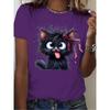 Fluffy Black Cat Women's Tee - Cute Cartoon Graphic, Playful Feline Print for Casual Daily Wear