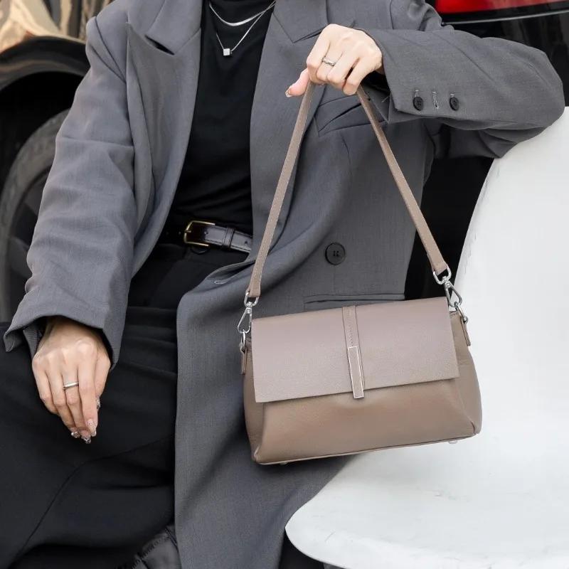 Natural Cow Leather Simple Fashiable Shoulder Bag for Women, Versatile Commuting Small Square Crossbody Bag Underarm Handbag