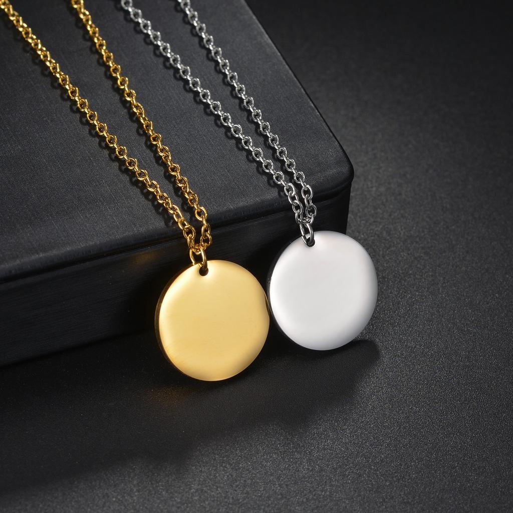 Stainless Steel Round Disc Pendant Necklace Minimalist Customizable Coin Jewelry for Men Women