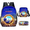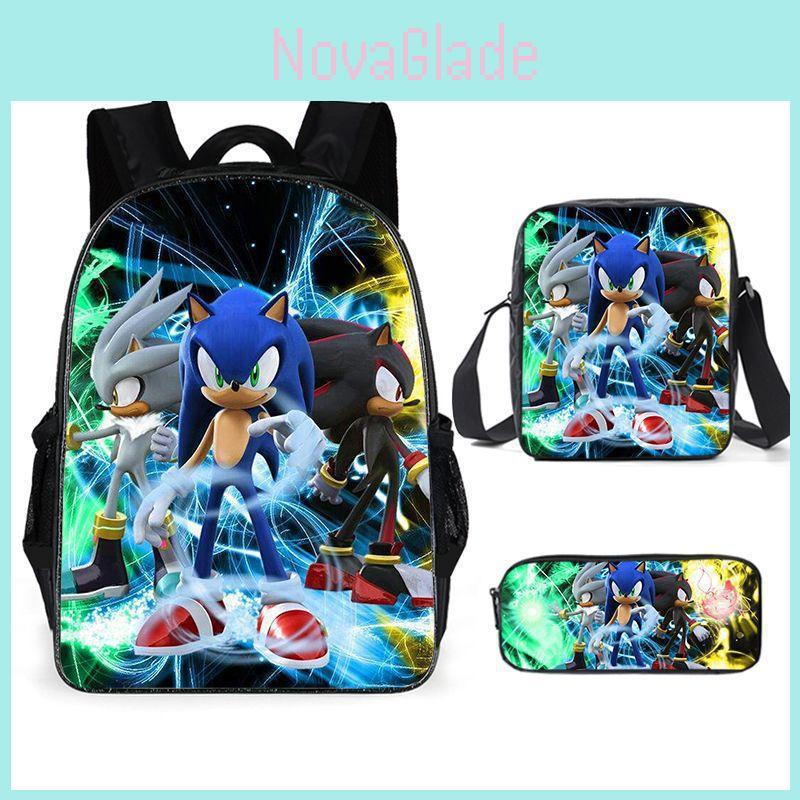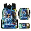 The SONIC cartoon school backpack three-piece set features a lightweight, breathable Oxford fabric construction with generous dimensions, including a 17-inch backpack, shoulder bag, and pencil case. Designed for elementary students, it supports daily school needs with durable, wear-resistant materials and a comfortable air-cushion strap system. Ideal for school education, it offers ample storage and easy maintenancesimply wipe with a damp cloth.