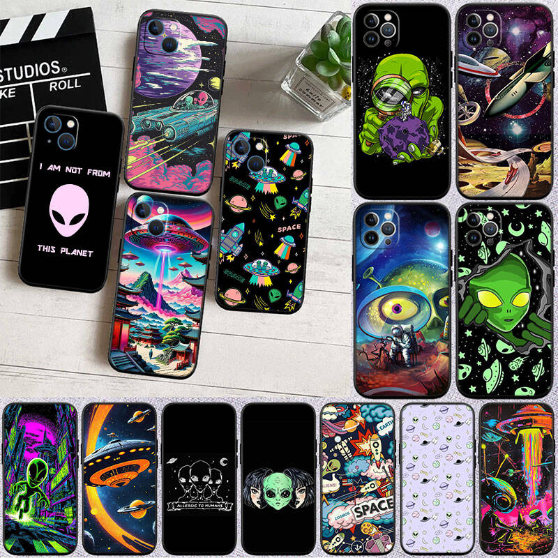 MH140 Space Alien UFO Phone Shell Case for iPhone 7 8 11 12 13 14 15 16 17 16E XS Pro Max XR X SE Air