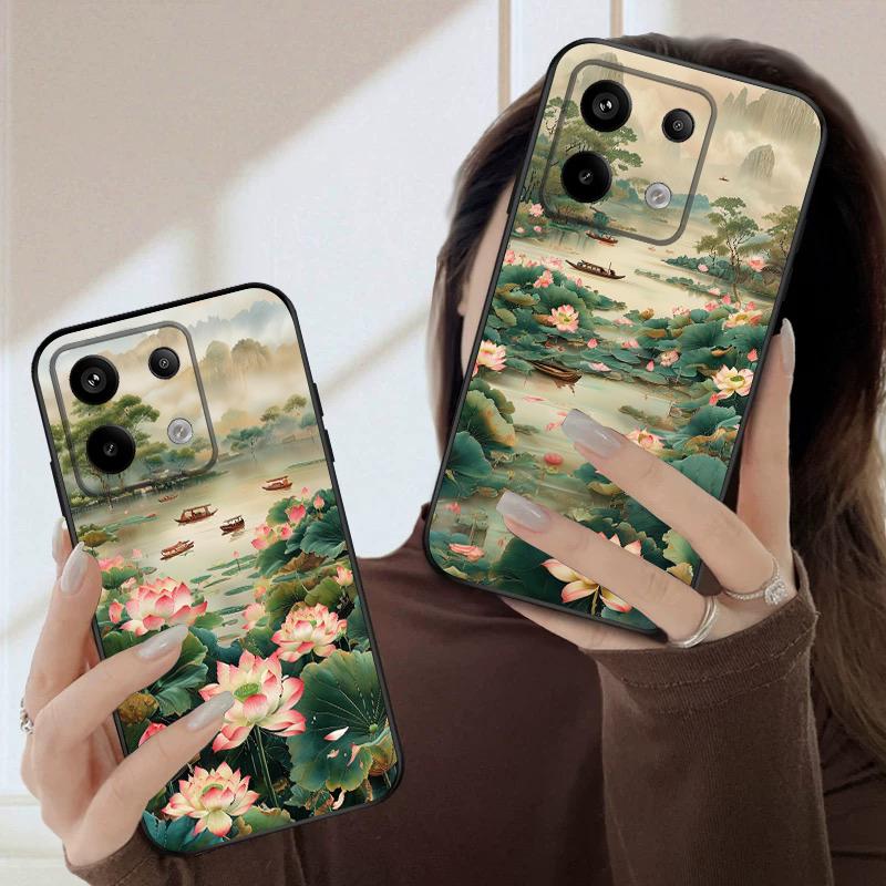 Ship and Red Lotus For Redmi Note 9 9S 10 11 12 12S 13 Pro+ Plus 5G India 14 Pro 4G Global 14S 13C 14 silicone soft phone case